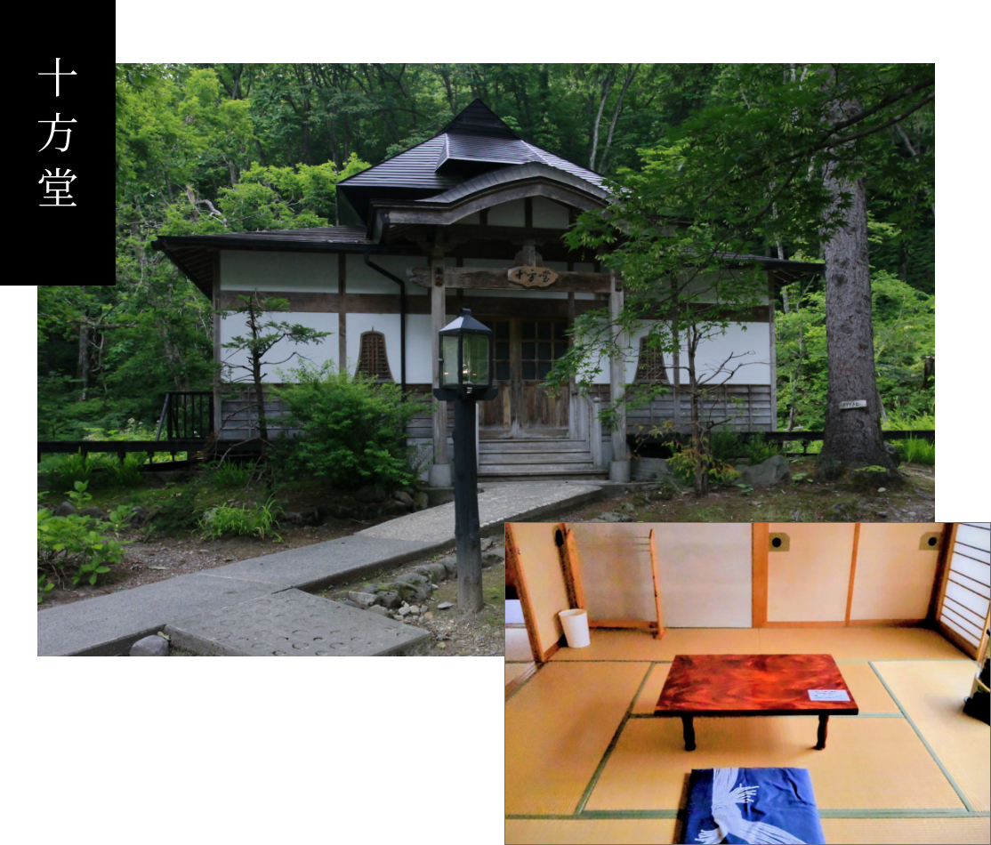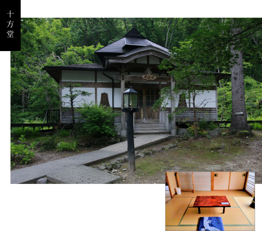 つり橋を渡り、奥へ進んだ先に佇む「十方堂」。